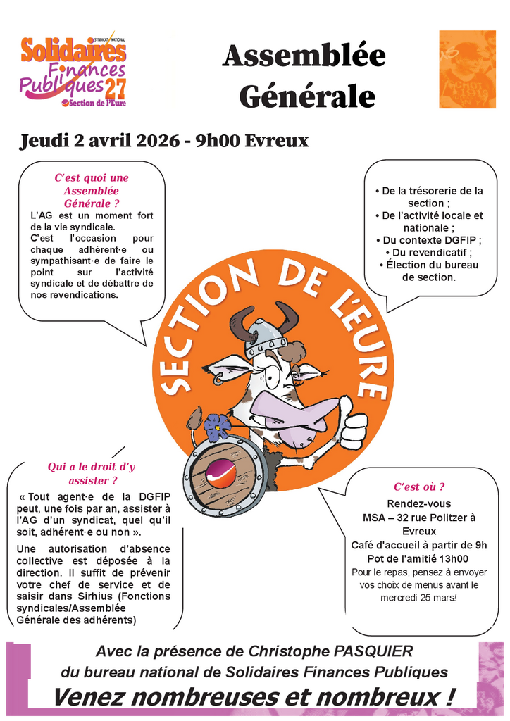 Vous êtes chaleureusement convié·es à notre assemblée générale annuelle qui aura lieu le 2 avril prochain à Evreux. Tu trouveras une invitation / affiche ci-dessous avec tous les renseignements nécessaires.