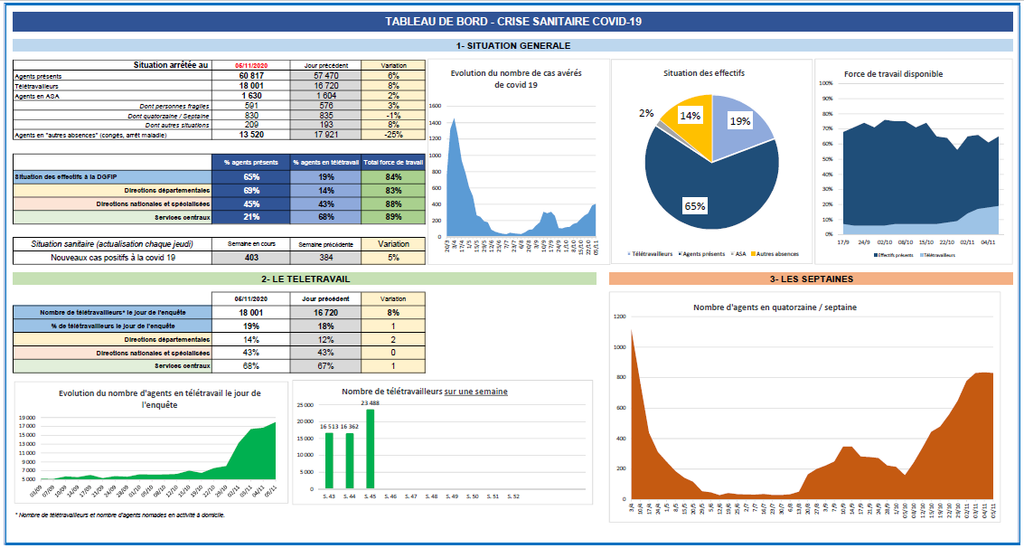 Dans le cadre de la gestion et du suivi de la crise du COVID19 à la DDFiP de l'Isère, ci-dessous le point de situation au 5 novembre 2020 donné par la direction :