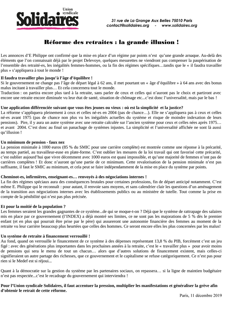 Ci-dessous les 1ères analyses de Solidaires suites aux "annonces" d'E. Philippe, qui ne font que confirmer notre rejet d'un système "universel" régressif par point.