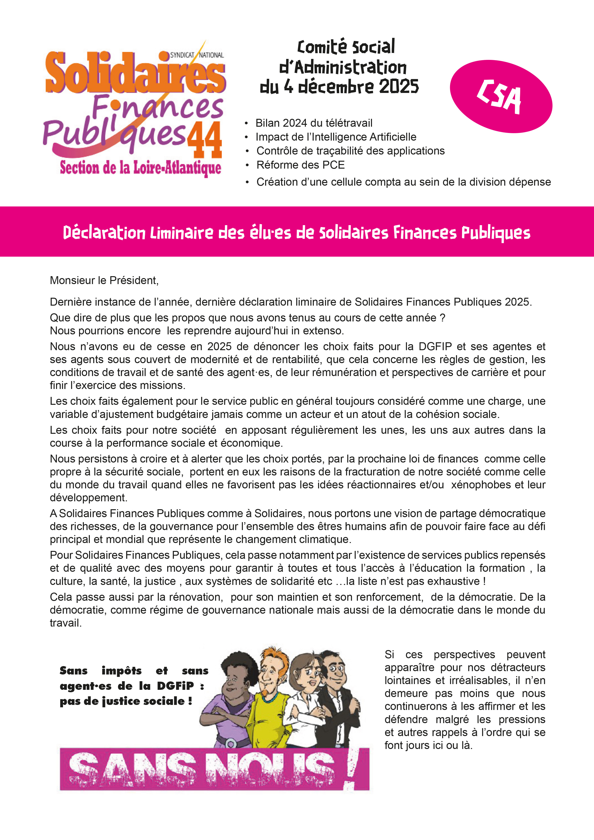 Ci-dessous, notre déclaration liminaire au CSAL du 4 décembre 2025