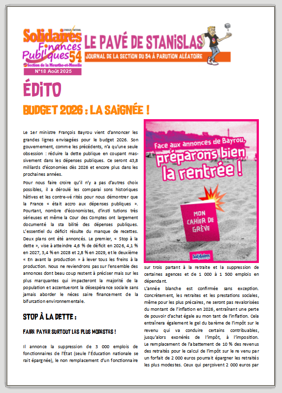 Nous vous proposons ce 22ème numéro du Pavé de Stanislas qui revient sur la grève et la manifestation du 2 décembre à Nancy contre le projet de budget austéritaire du gouvernement, un article sur le crédit impôt-recherche, une brève sur un acte anonyme islamophobe à la DDFIP 54.