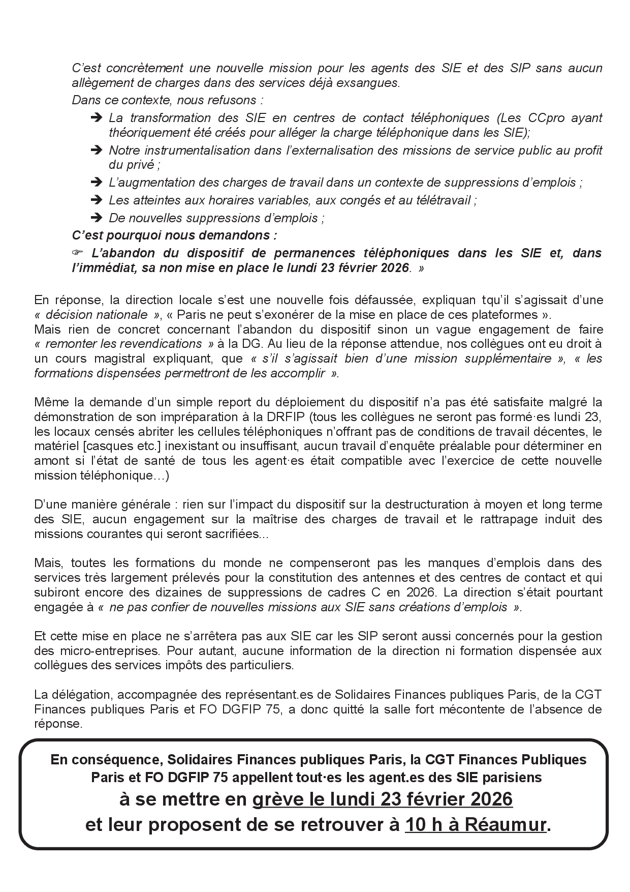 CSAR du 16 février 2026 : Notre déclaration liminaire