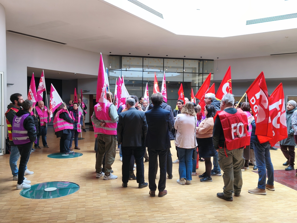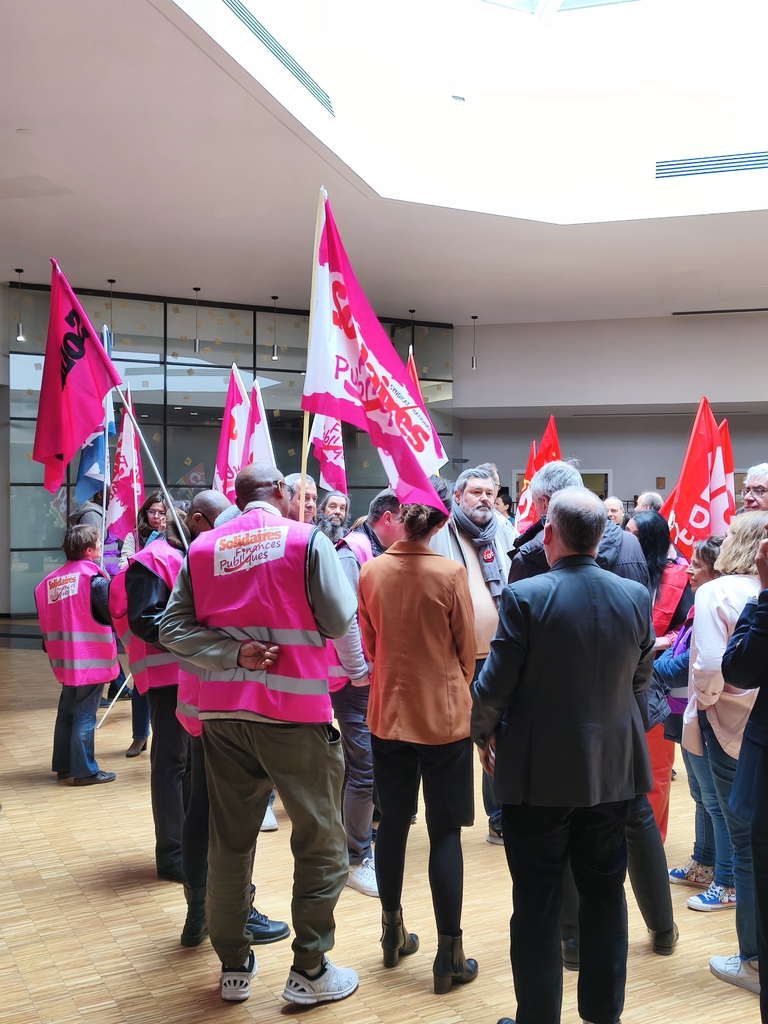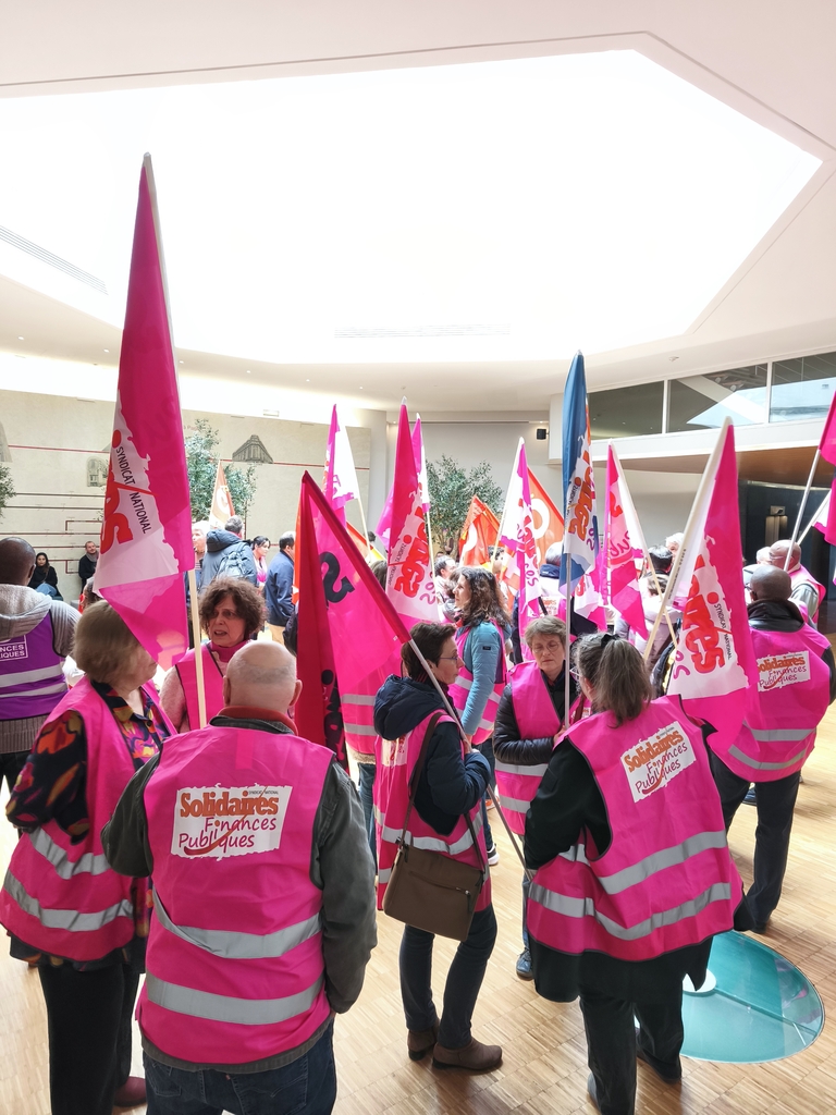Les organisations syndicales ont décidé de ne pas siéger et de protester contre ce nouveau massacre de nos emplois et de nos missions en envahissant ce midi le hall de Réaumur et en interpellant le DRFIP par intérim, M. Mordacq.