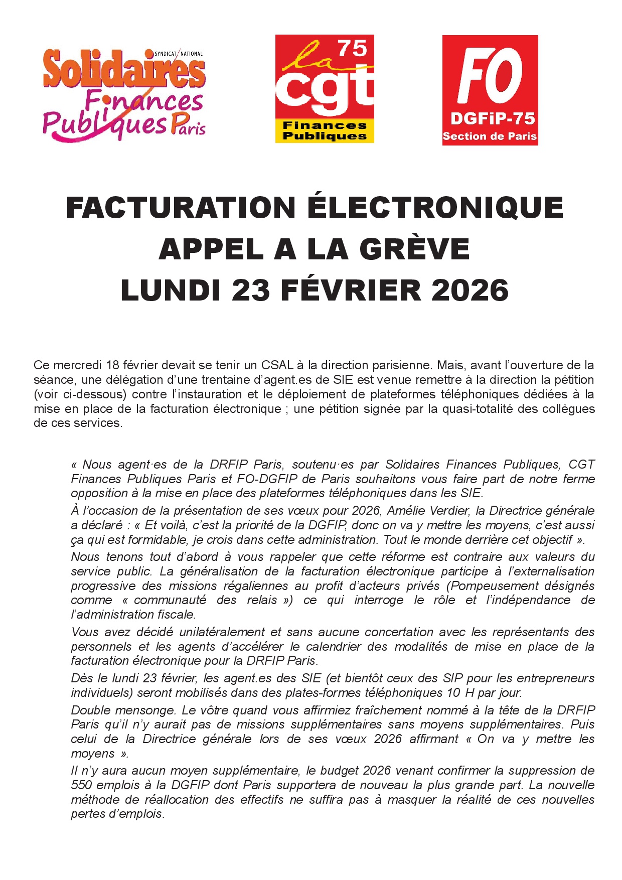 Facturation électronique : Grève 23 février